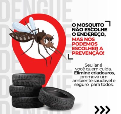 Com a chegada do período de chuvas e calor, o risco de proliferação do mosquito Aedes aegypti, transmissor da Dengue, aumenta significativamente. Diante disso, a prefeitura reforça o alerta à população para que todos façam sua parte na luta contra a doença, eliminando possíveis criadouros do mosquito em suas casas e arredores.