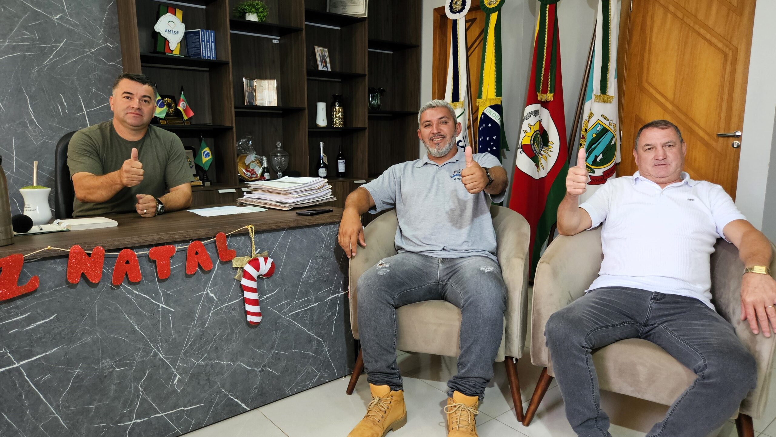 O prefeito Ronaldo Machado, acompanhado do secretário de Obras, Adalvan Brizola, e do secretário de Agricultura, Walter Lechinski, apresentaram um resumo das atividades e projetos desenvolvidos ao longo do ano.