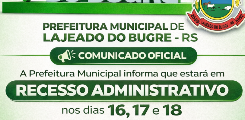 A Prefeitura Municipal informa que estará em RECESSO ADMINISTRATIVO nos dias 16, 17 e 18. Durante este período, não haverá expediente interno nas repartições públicas municipais. ⚠️ Os serviços essenciais funcionarão em regime de plantão. Retornamos às atividades normais na … Leis mais…