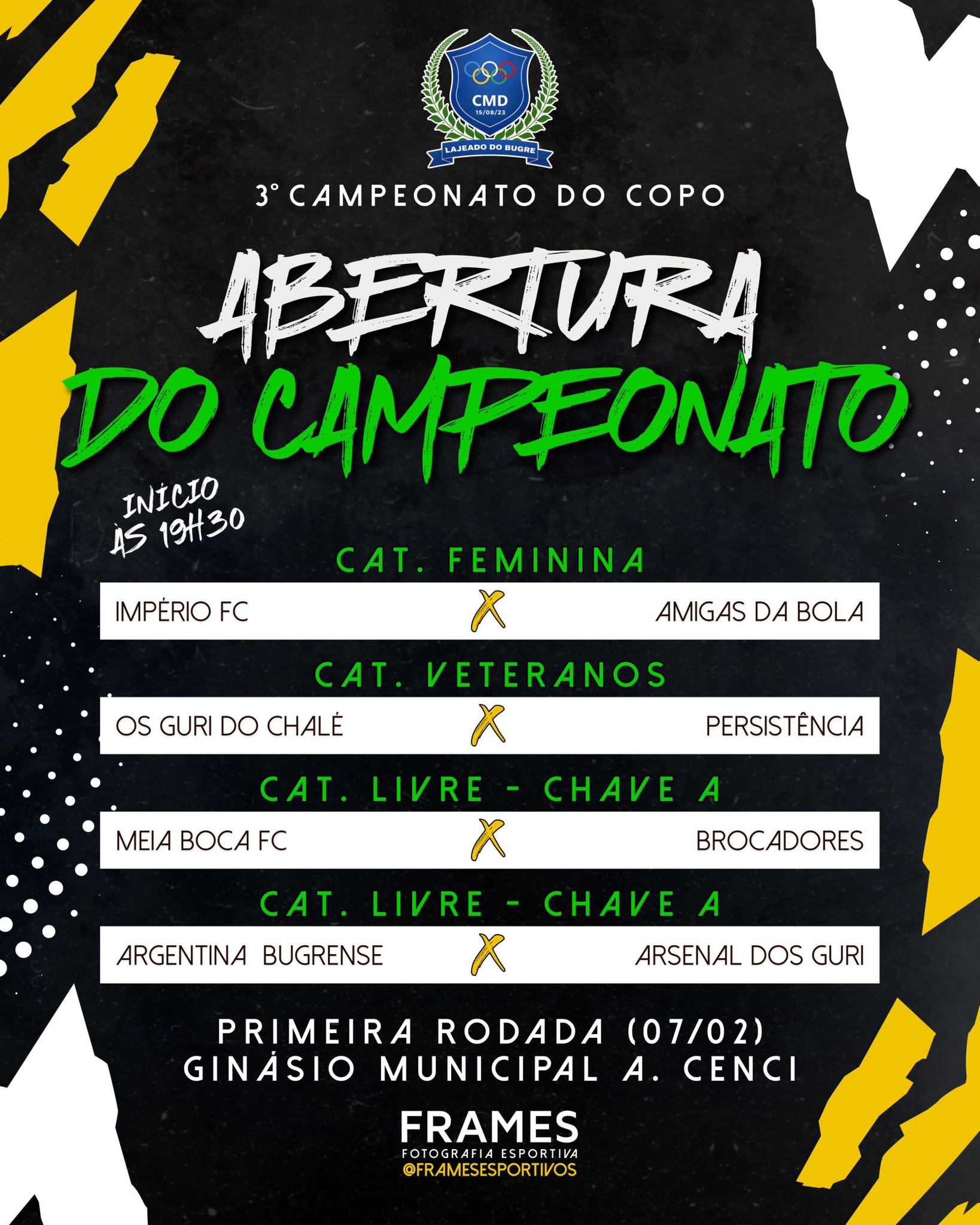 A organização convida a comunidade para prestigiar a abertura oficial e acompanhar os confrontos que marcam o início da competição.