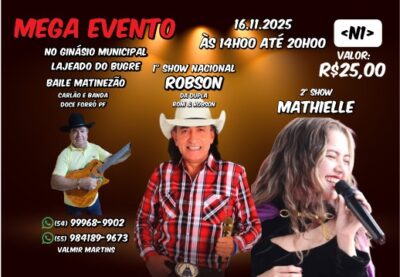 Durante a live, eles falaram sobre os eventos que vão acontecer neste domingo, dia 16. Um deles é um baile/show com o Robson, da dupla sertaneja Roni e Robson, além da participação do Carlão e Banda Doce Forró de Passo Fundo, e a cantora Mathielle. Essa festa celebra os 20 anos de carreira do artista local Valmir Martins. Os ingressos custam R$ 25,00 e o evento começa às 14h no ginásio municipal.
