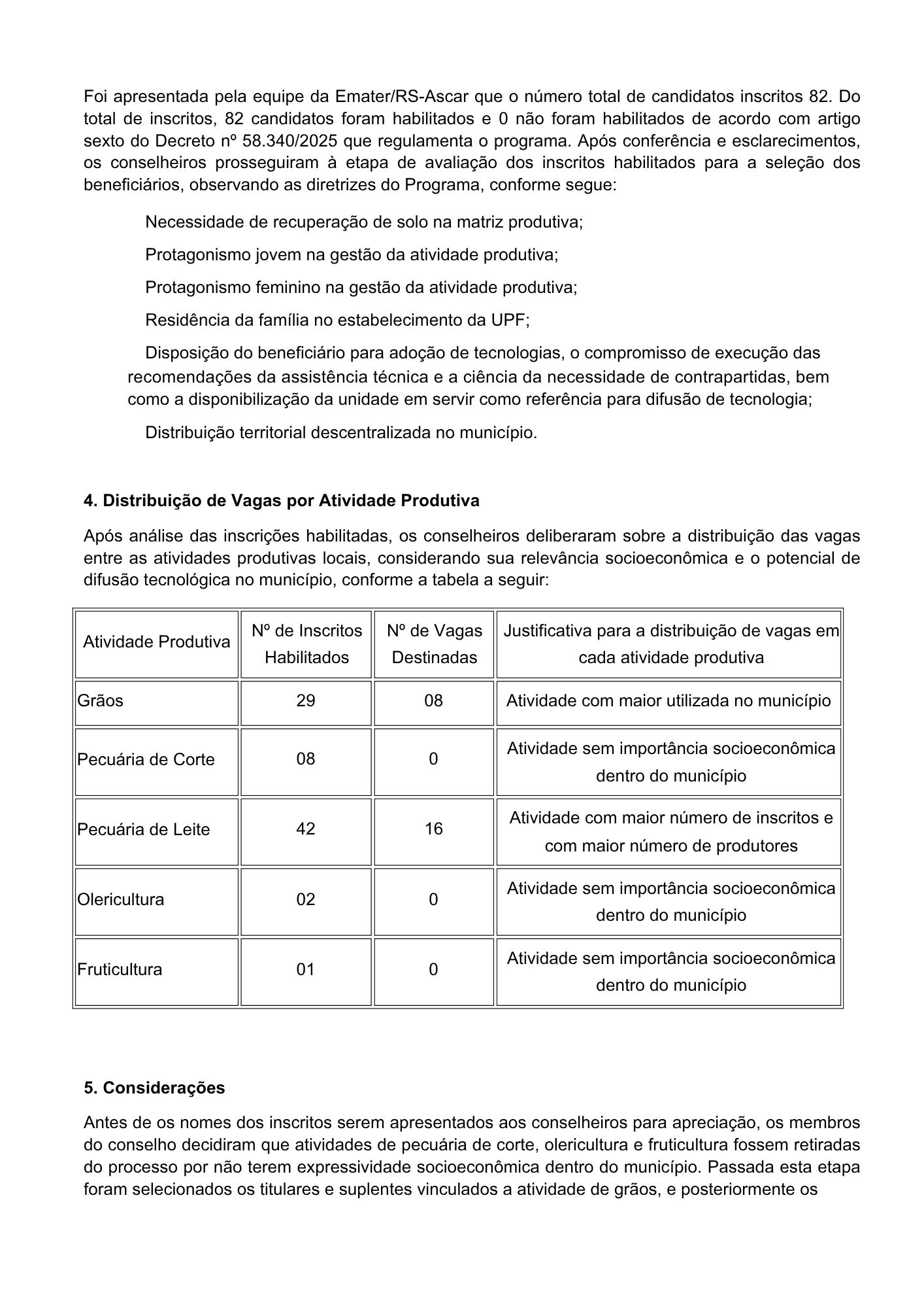 O programa tem como objetivo fortalecer a agricultura familiar, oferecendo investimentos que podem chegar até R$ 30 mil por projeto. No município de Lajeado do Bugre, serão escolhidos 24 produtores pelo conselho municipal de Agricultura.
