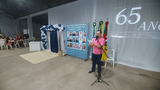Por último, antes da diretora Elisabete fazer suas homenagens, o vereador Mário de Souza falou em nome do Legislativo Municipal. Depois, foi a vez do prefeito Ronaldo Machado destacar os 65 anos da escola. A 20ª Coordenadoria de Educação do Estado também esteve presente, representada pelo assessor jurídico Hélio Boeri.