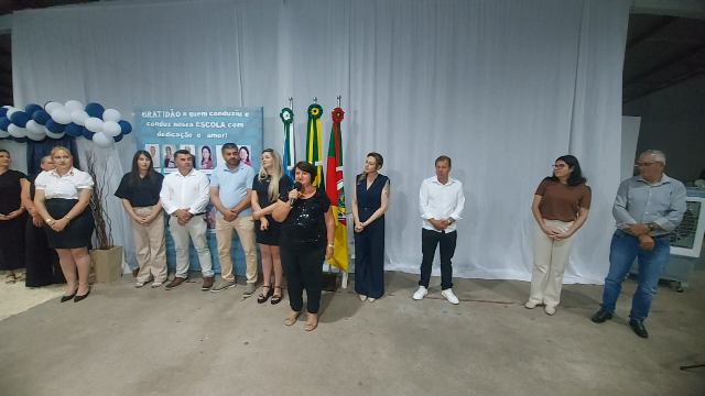 Foram mais de 300 pessoas participantes, incluindo a equipe escolar, representantes do município, ex-professores e ex-alunos. A atual direção formada pela diretora Elisabete Bandera, vice-diretoras Ana Graciela Friederich e Marisa Ganze, além das supervisoras Francieli Rosa dos Santos e Cleny Garcia da Conceição, recepcionaram os presentes.