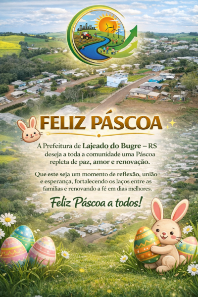 A Prefeitura de Lajeado do Bugre deseja a toda a comunidade uma Páscoa repleta de paz, amor e renovação.