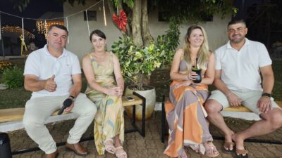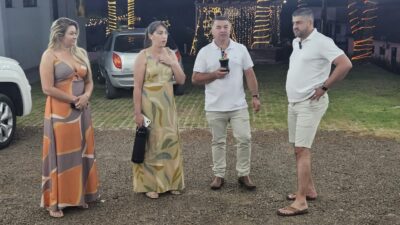 O prefeito Ronaldo Machado, acompanhado da primeira-dama Aline Lyrio, do vice-prefeito Maico de Lima e de sua namorada Jaciara Ludke, conduziu uma transmissão ao vivo na praça do município.