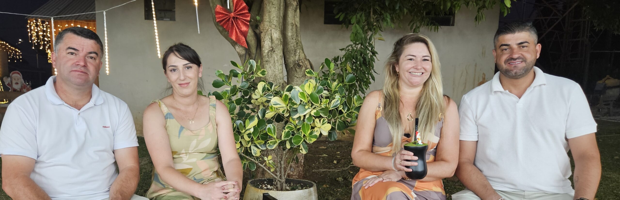 O prefeito Ronaldo Machado, acompanhado da primeira-dama Aline Lyrio, do vice-prefeito Maico de Lima e de sua namorada Jaciara Ludke, conduziu uma transmissão ao vivo na praça do município.