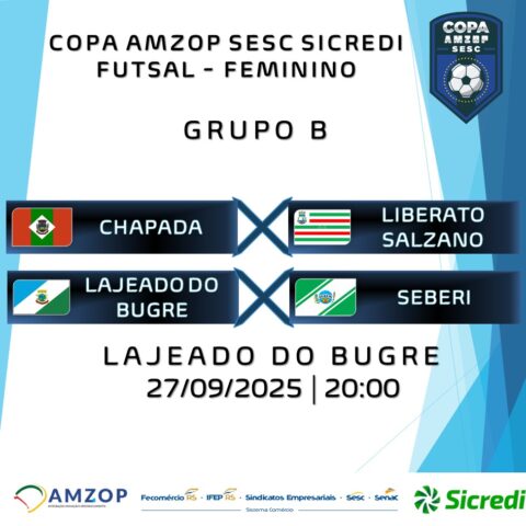 A Copa Amzop Sesc Sicredi de Futsal 2025, organizada pelo Sesc Frederico Westphalen, teve sua abertura oficial no dia 12 de setembro, em Seberi. A competição conta com a participação de mais de mil atletas distribuídos em 20 times masculinos … Leis mais…
