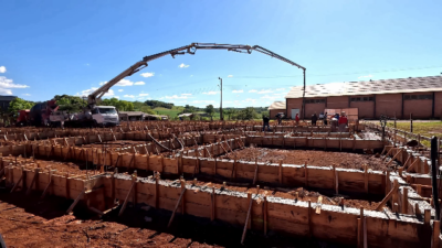 Na terça-feira, dia 24 de setembro, aconteceu a concretagem das vigas, um passo importante antes de começar a levantar as paredes da creche.
