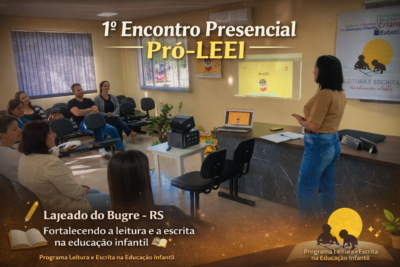 Foi iniciado nesta quarta-feira, dia 08 de abril, o 1º Encontro do Pró-LEEI — Programa de Leitura e Escrita na Educação Infantil, em Lajeado do Bugre. A ação é coordenada pela Secretaria Municipal de Educação, sob a orientação da formadora professora Marinês Silva de Sá.